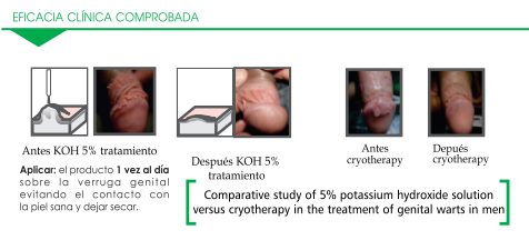 Solución de hidróxido de potasio al 5% para su uso tópico en la piel, para adultos y niños a partir de 2 años.